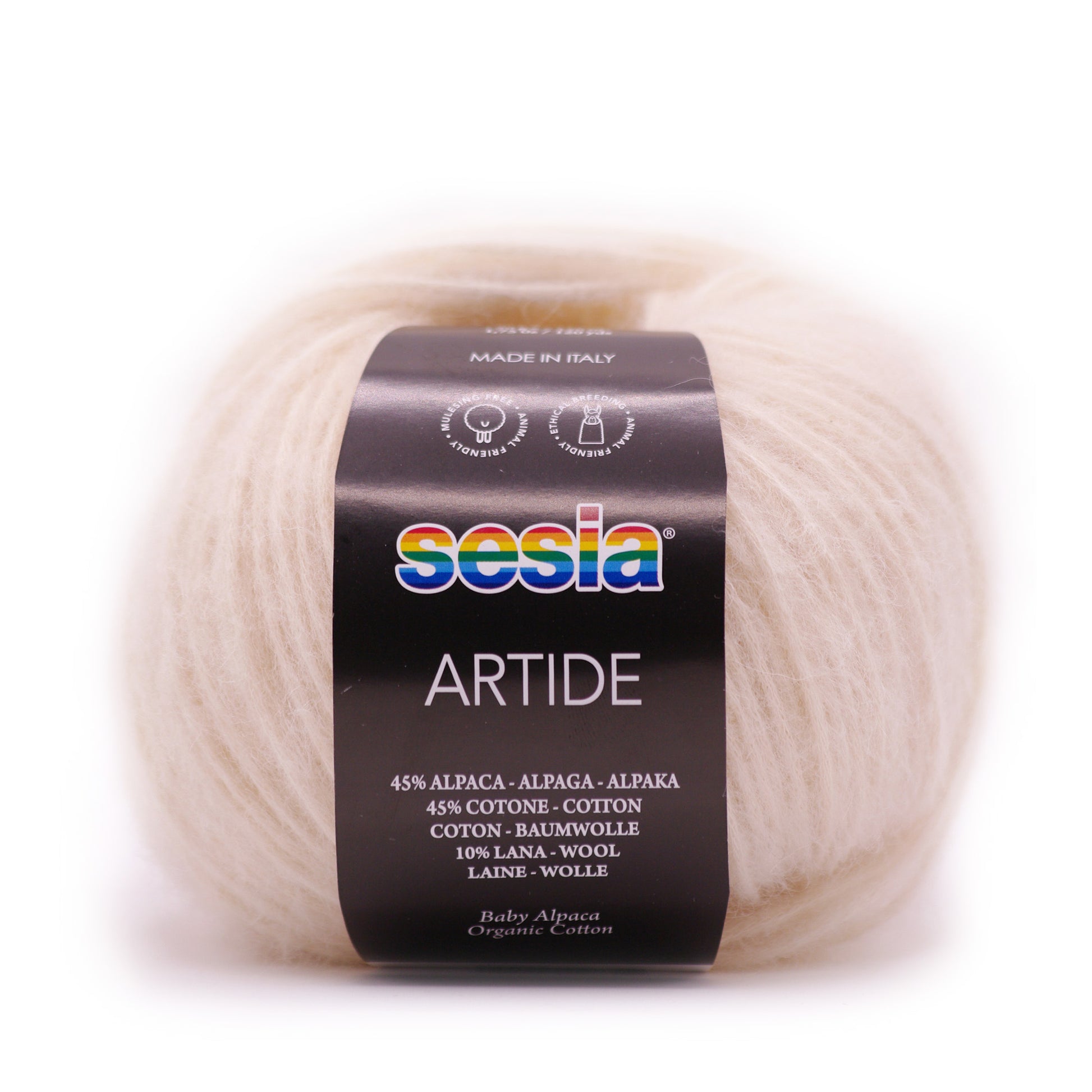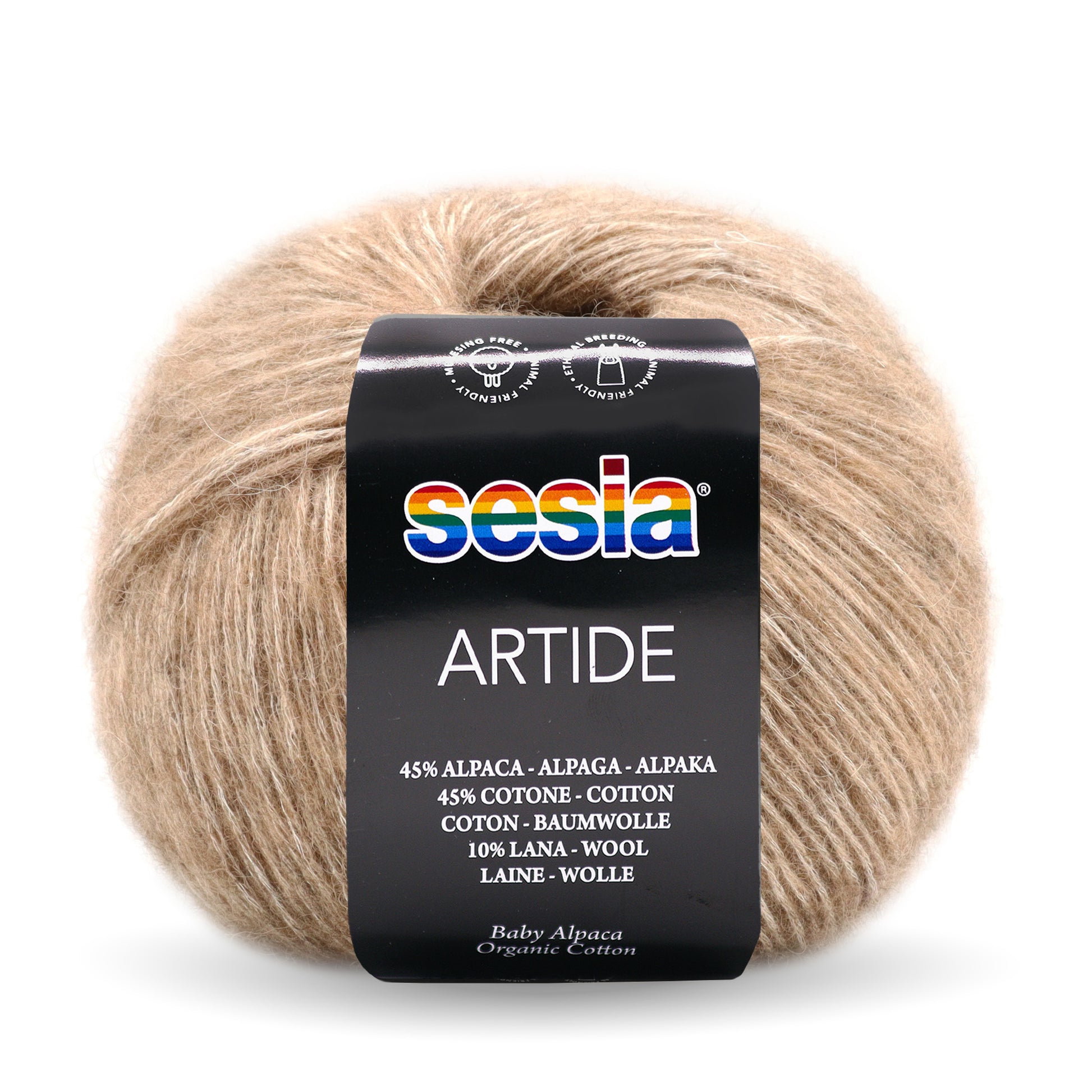 Material: 45 % Baumwolle - 45 % Babyalpaka - 10 % Schurwolle SW (Merinowolle) Lauflänge: 110 m/50g Nadelstärke: 5-8 mm Maschenprobe: 10x10 cm = 15 M/23 R Pflegehinweise: Handwäsche
