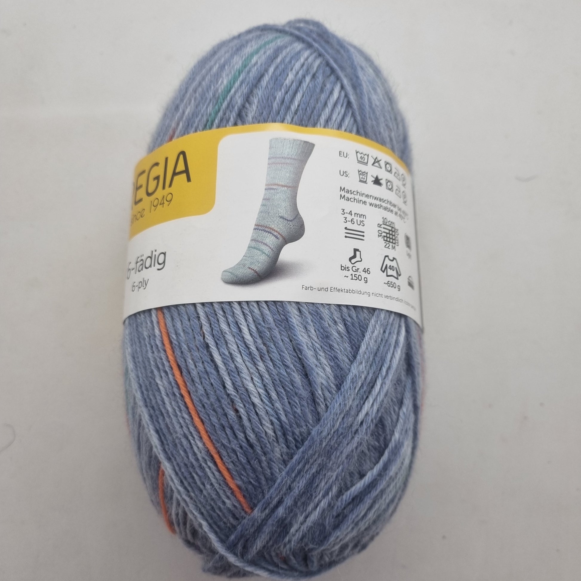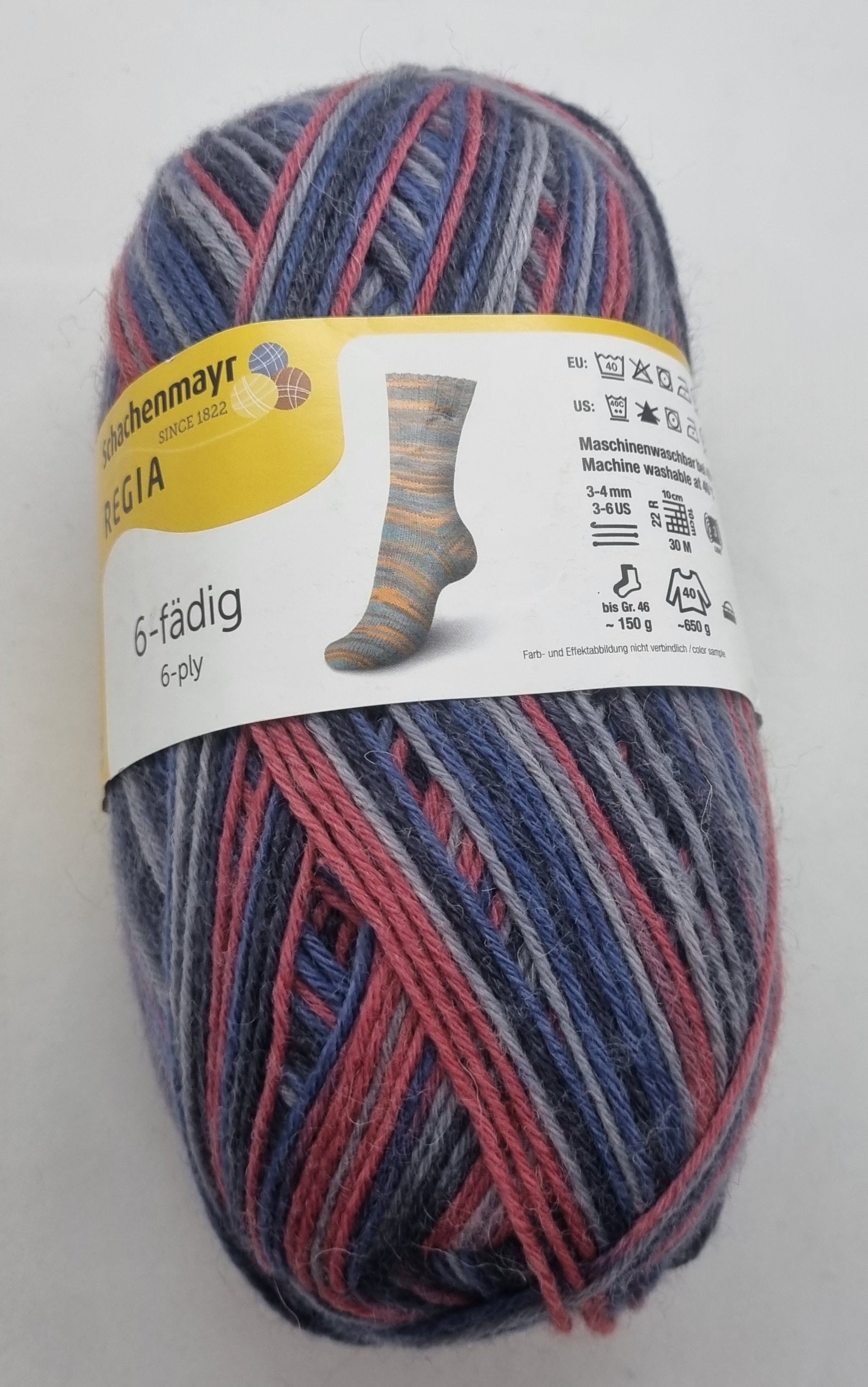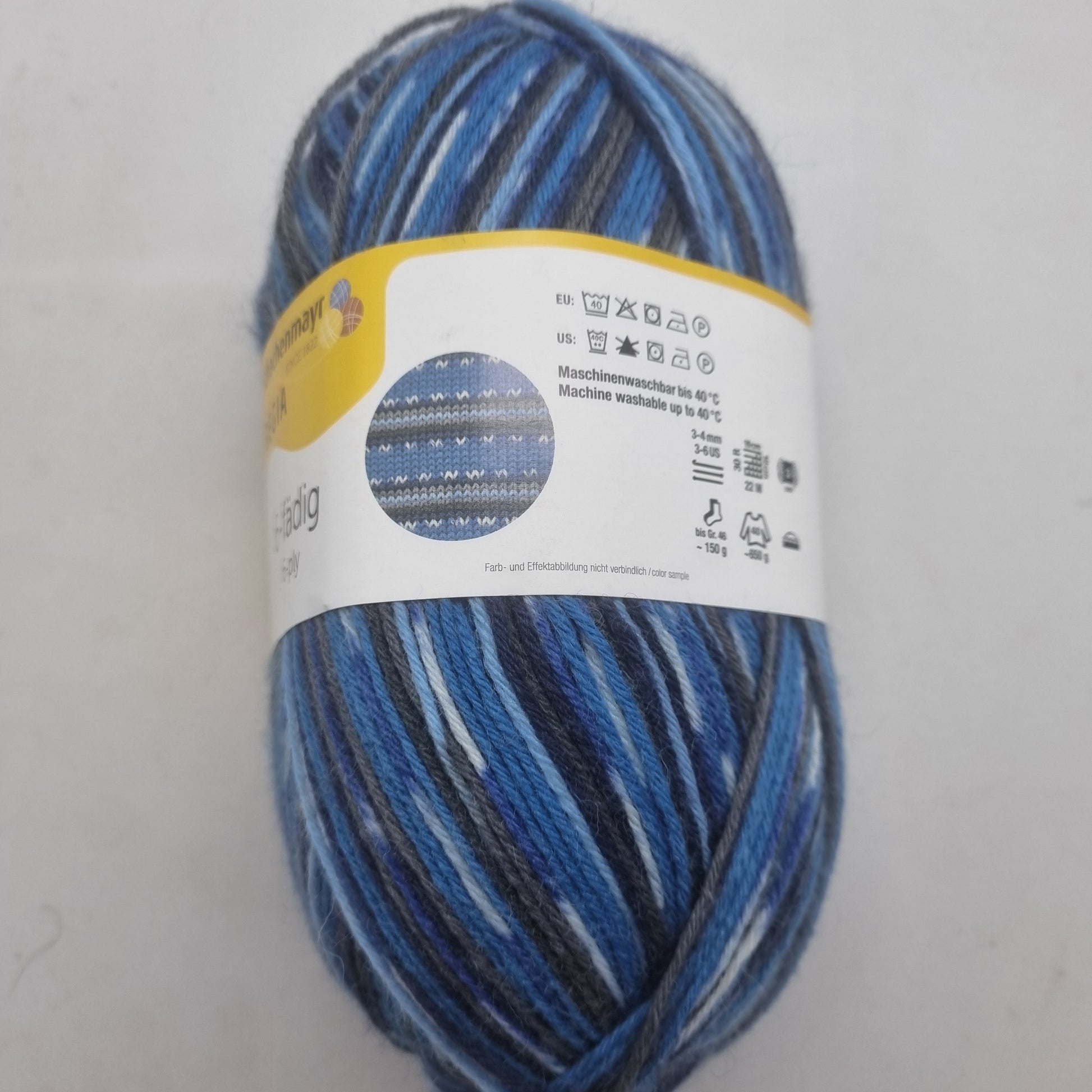 Zusammensetzung: 75% Schurwolle superwash, 25% Polyamid Lauflänge: 150 g = ca. 390 m Nadelstärke : 3-4 Maschenprobe: 10 x 10 cm = 22 M | 30 R Verbrauch: Socken bis Gr. 46 = 150 g